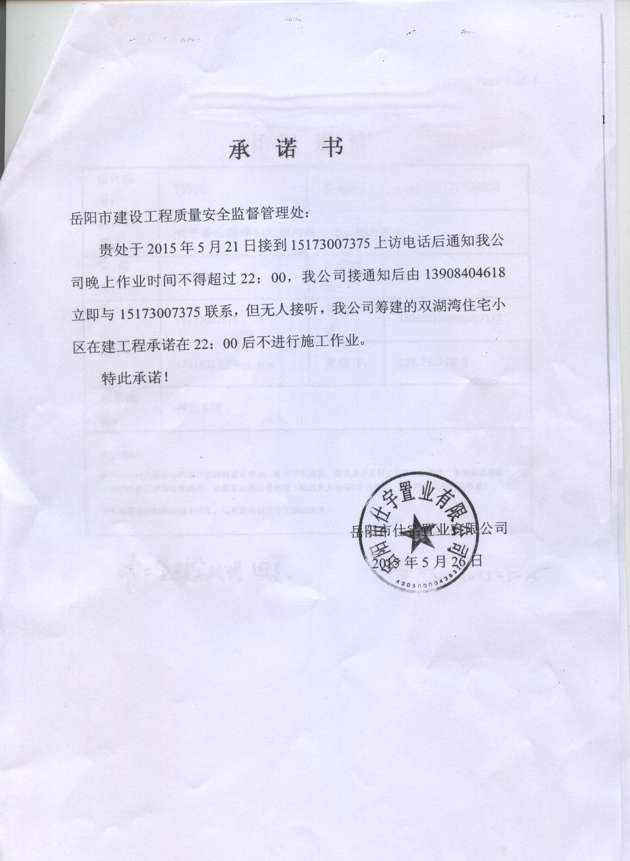 经我局监督机构市建设工程质量安全监督处现场调查,香山四季项目主体已完工,正在进行绿化作业,没有噪声扰民问题。双湖湾项目主体正在施工,针对施工噪声问题,我们已要求开发商作出书面承诺,严格控制作业时间。同时,要求开发商与您联系进行沟通,开发商多次拨打您的电话均无人接听。市建设工程质量安全监督处工作人员也多次拨打您的电话,也无法接通。鉴于该情况,请您收到我们的回复后,共同参与监督,若发现开发商违反承诺现象,请及时与市建设工程质量安全监督处联系,地址:巴陵东路市住建局北院5楼。