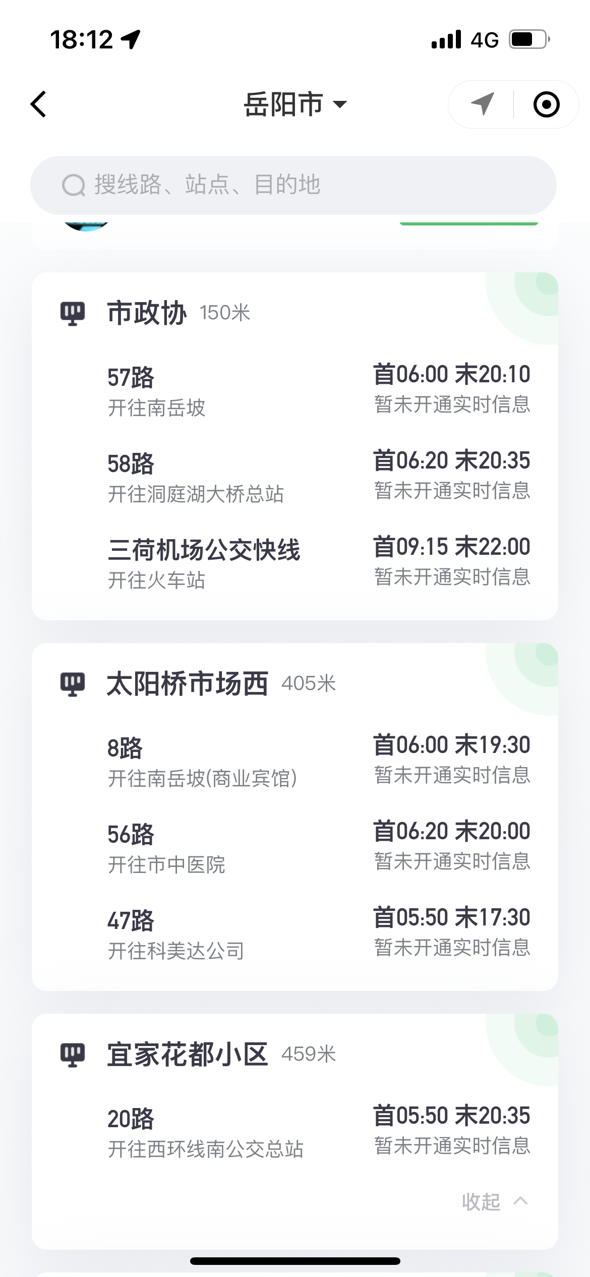 内容: 之前岳阳公交可以看到实时更新,前段时间开始就一直看不到了,这是什么情况呀?以前能在微信公交卡卡包里看到,现在就显示未开通实时信息,什么时候能恢复呢?