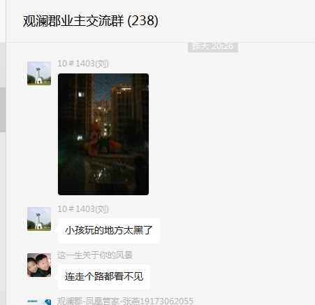 附件1:小区业主反映.png 附件2:夜间现场照明.jpg 附件3:照明规范值.jpg |